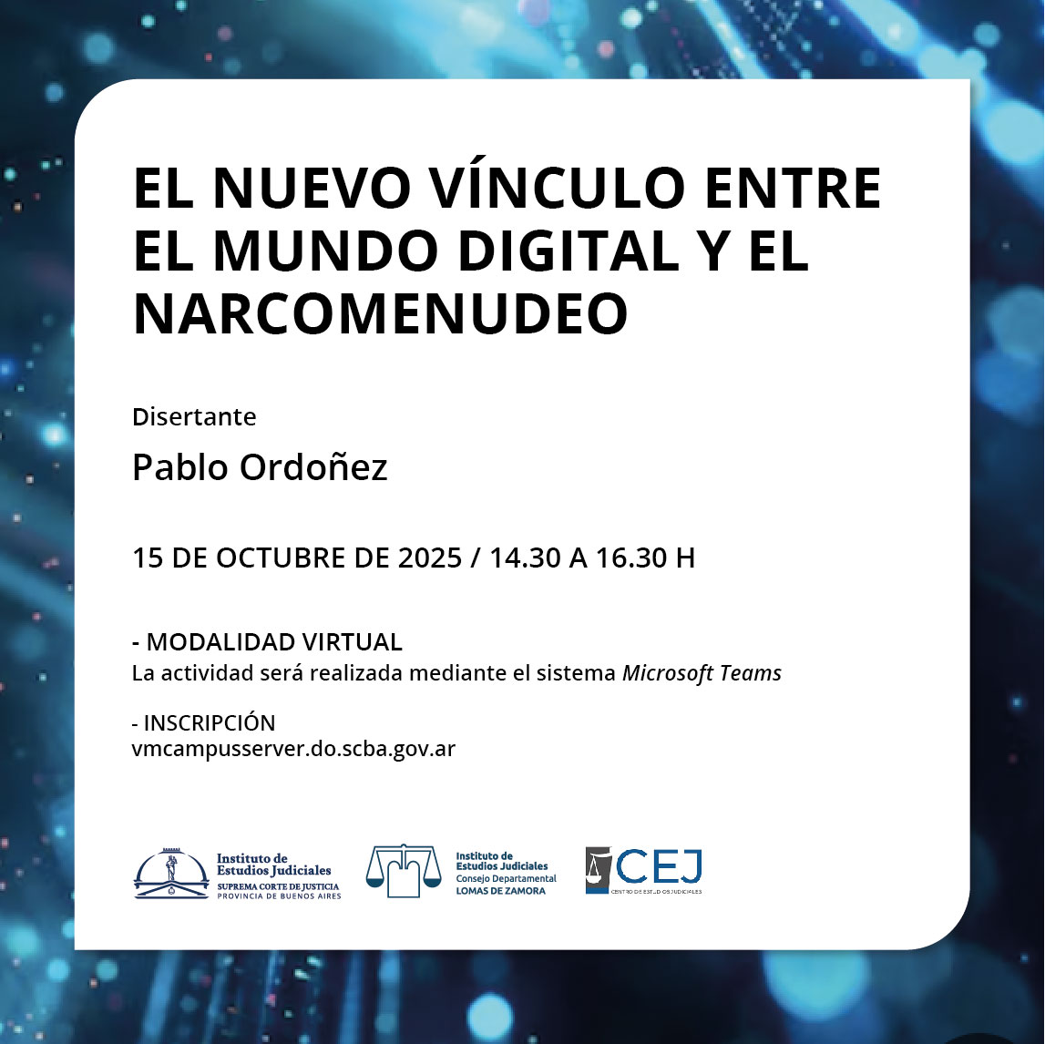 Organizado junto con el Centro de Estudios Judiciales de la Universidad Nacional de Lomas de Zamora y el Consejo departamental Lomas de Zamora del IEJ / Fecha y horario: 15 de octubre de 2025, de 14.30 a 16.30 h / MODALIDAD VIRTUAL (Teams)