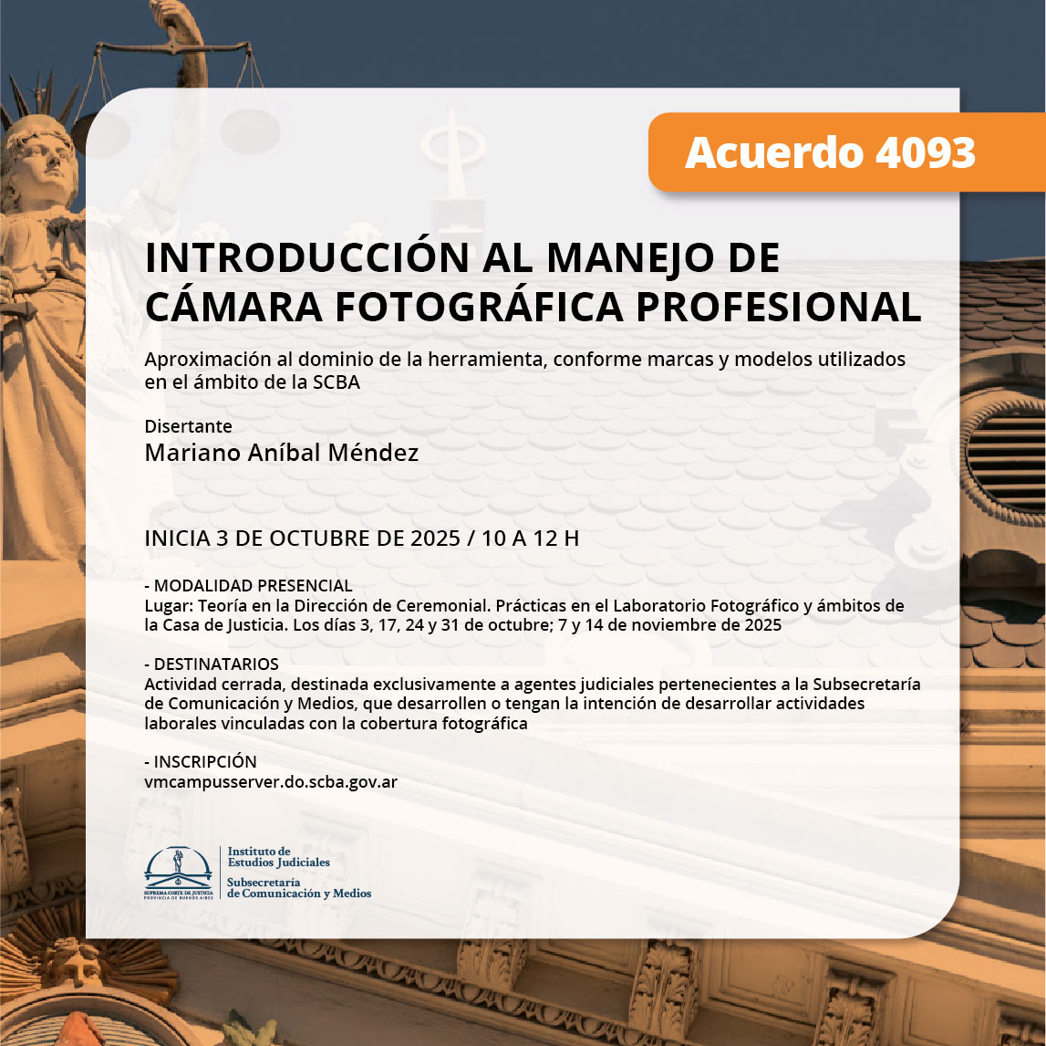 Destinatarios: Agentes judiciales pertenecientes a la Subsecretaría de Comunicación y Medios, que desarrollen o tengan la intención de desarrollar actividades laborales vinculadas con la cobertura fotográfica