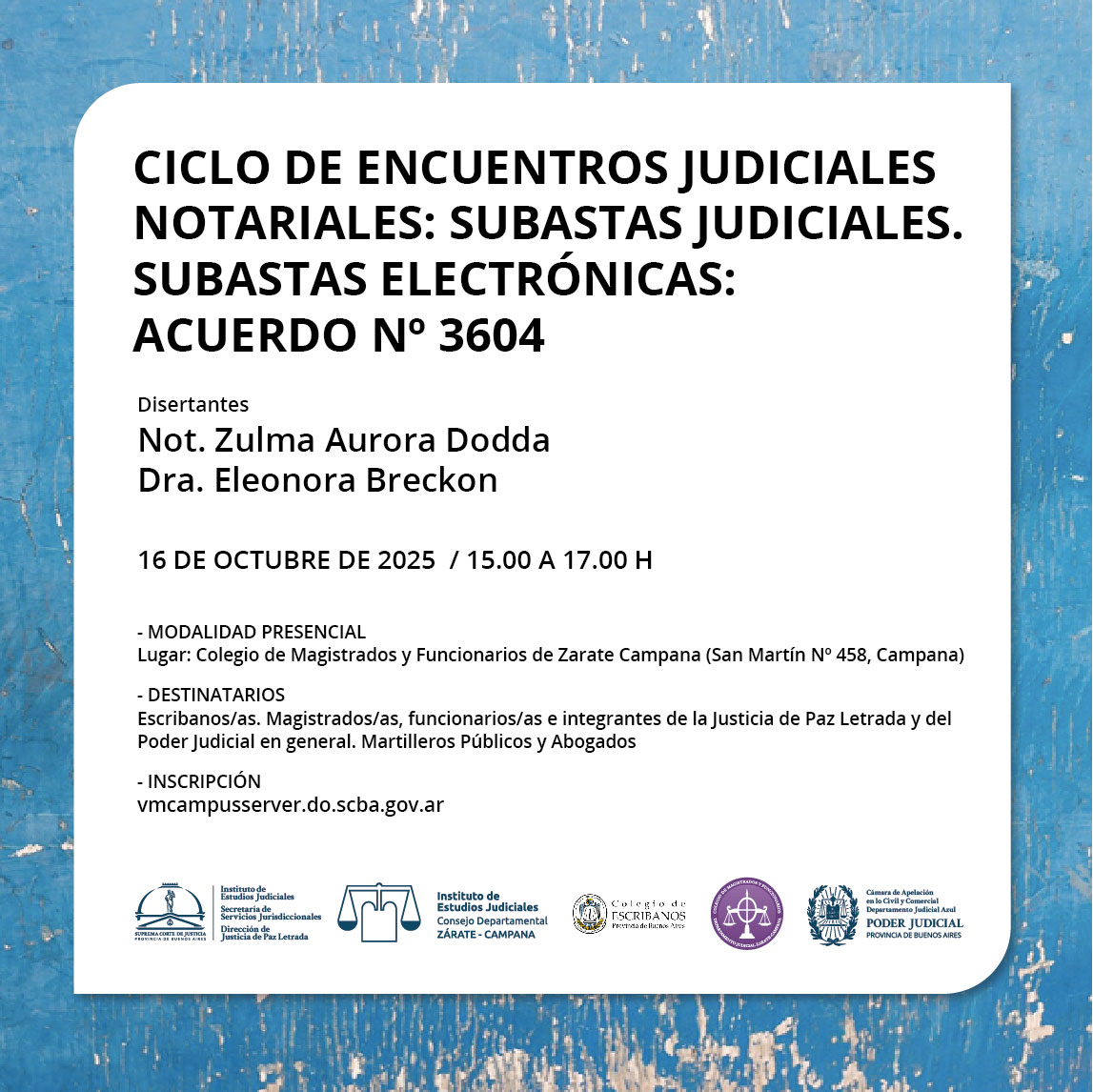 Ciclo de encuentros Judiciales Notariales. Subastas Judiciales. Subastas Electrónicas.Zarate Campana