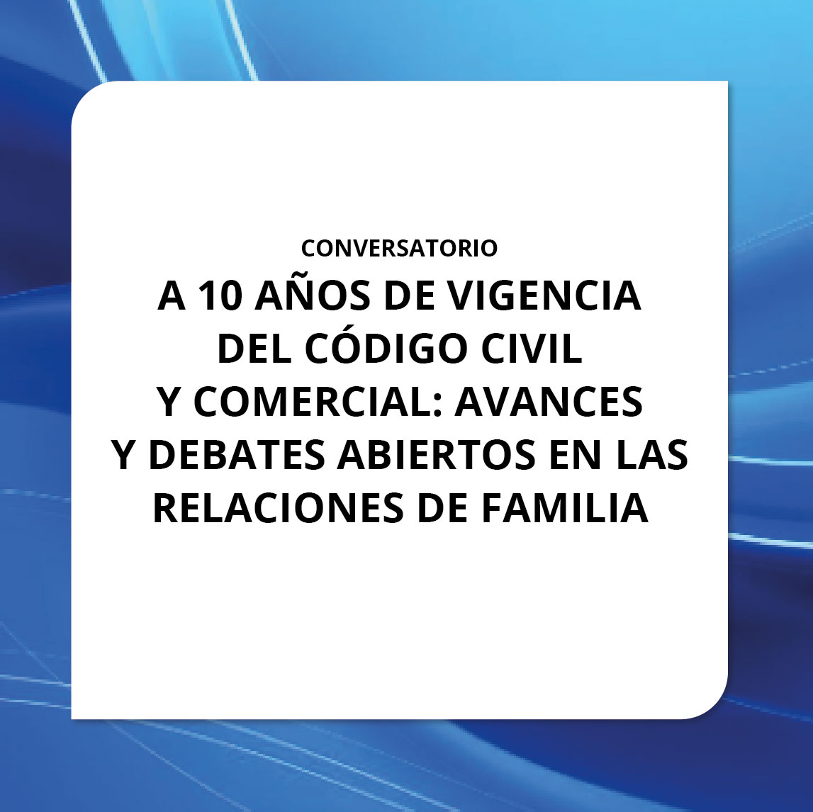 Conversatorio: A 10 años de vigencia del Código Civil y Comercial: avances y debates abiertos en las relaciones de familia / Organizado junto con la Dirección de Justicia de Paz, la Municipalidad de Pinamar y la UADE / Disertantes: Marisa Herrera y Natalia de la Torre / Fecha y hora: 20 de noviembre de 2025 de 16 a 19hs. / Lugar: UADE Campus Costa Argentina (Av. Intermédanos Nº 776, Pinamar) / MODALIDAD PRESENCIAL.