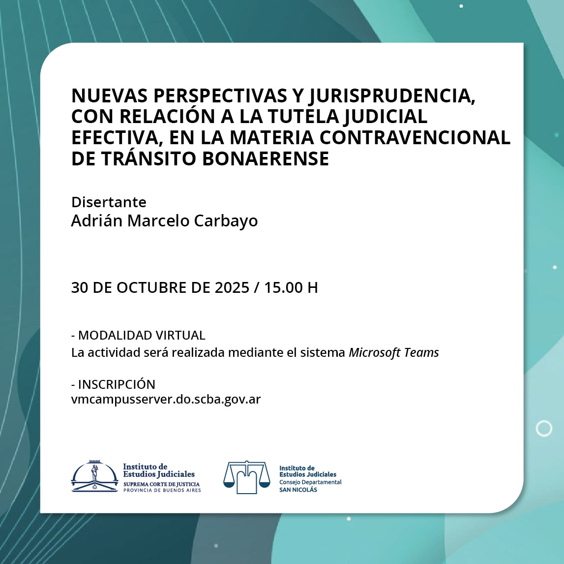 Organizado junto con el Consejo Departamental San Nicolás del IEJ / Disertante: Dr. Adrián Marcelo Carbayo - Esp. en Derecho administrativo / Fecha y horario: 31 de octubre de 2025, a las 15 hs. / MODALIDAD VIRTUAL