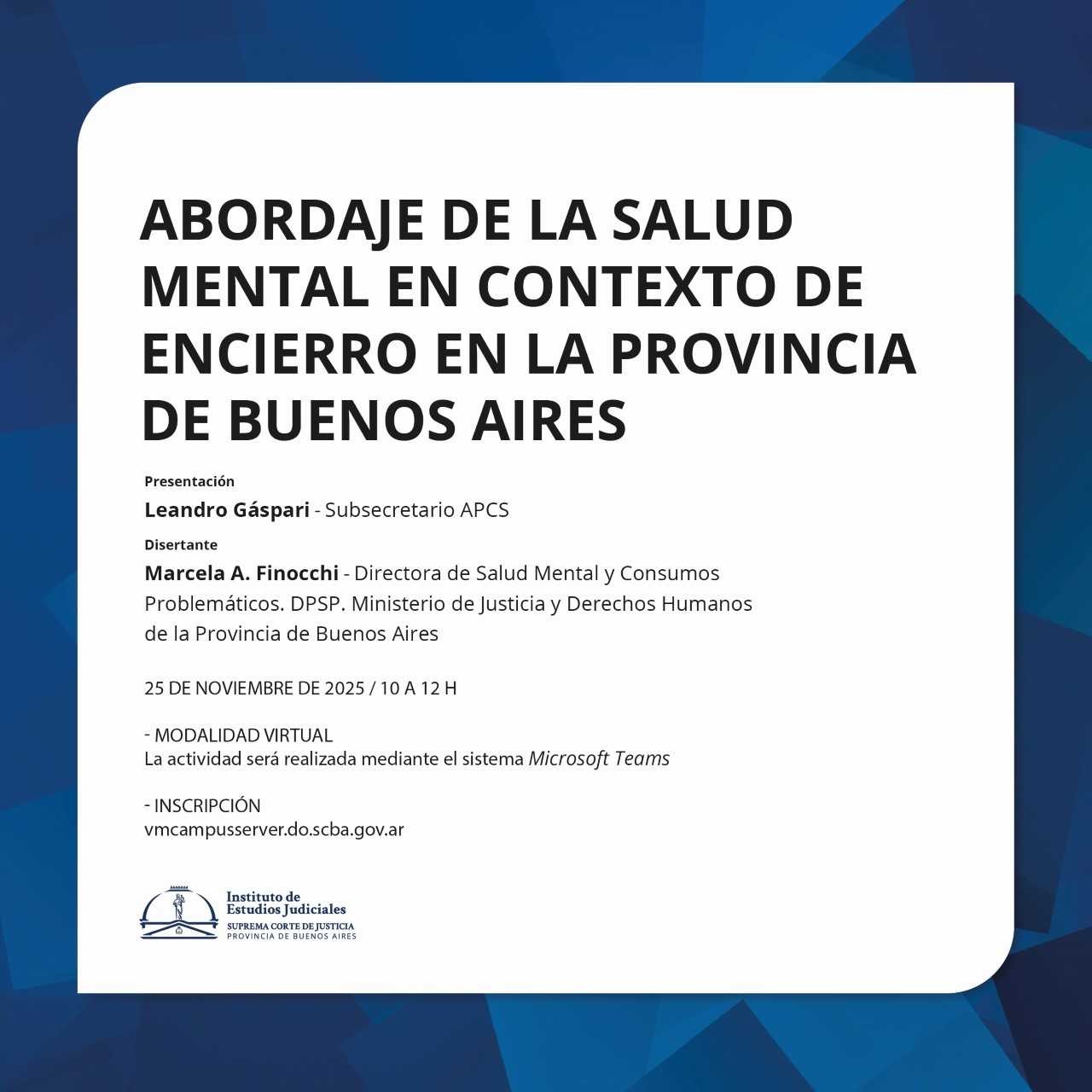 Organizado junto con la Autoridad de Implementación y Seguimiento del Programa de Cumplimiento de la Sentencia (APCS) / Fecha y horario: 25 de noviembre de 2025, de 10 a 12 h / MODALIDAD VIRTUAL (Teams)